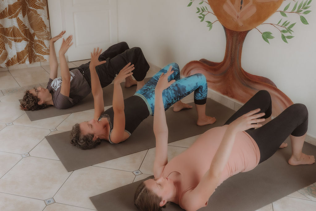 🌀 Le yoga collectif Un espace pour se retrouver entre femmes. Respirer ensemble. Bouger. Déposer ce qu’on porte. Un rendez-vous régulier rien qu’à toi — pour ne pas t’oublier dans le tourbillon de la maternité.